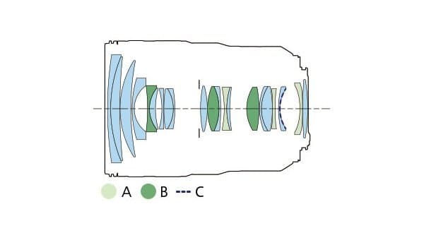 Sử dụng hệ thống thấu kính tiên tiến, trong đó 3 thấu kính phi cầu giúp giảm thiểu sự xuất hiện cầu sai và méo ảnh từ đó cải thiện độ sắc nét, 3 thấu kính phân tán cực thấp ED giúp hạn chế quang sai màu đem lại hình ảnh trong trẻo với độ chính xác màu cao. Ngoài ra, việc sử dụng một lớp phủ ASC (Air Sphere Coating) giúp ngăn chặn hiện tượng lóe sáng và hiện tượng bóng mờ, từ đó duy trì khả năng truyền ánh sáng, tạo độ tương phản cao ngay cả trong điều kiện ánh sáng mạnh.